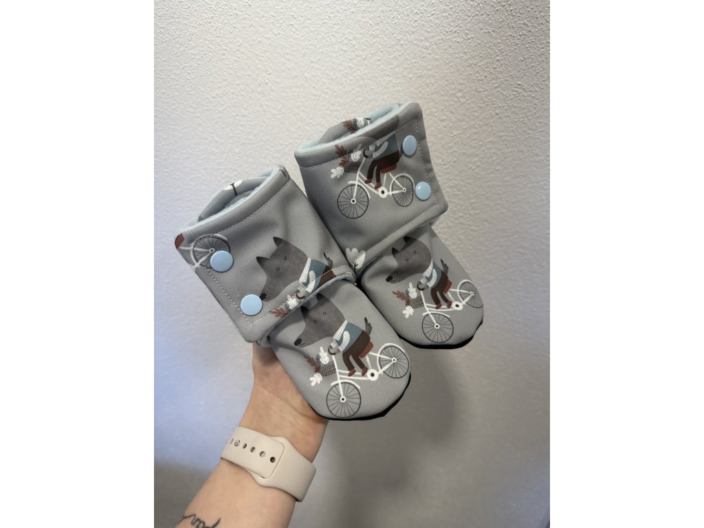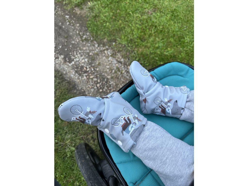 Softshell je praktická, prodyšná a nepromokavá látka. Skládá ze tří vrstev: termoaktivní látka, izolační vrstva měkký fleece, vnější neprmokavý materiál s membránou. Látka odolá většině klimatických podmínek, větru, dešti ... Capáčky jsou podšité ještě vrstvou fleecu, takže nožičky budou opravdu v teple.