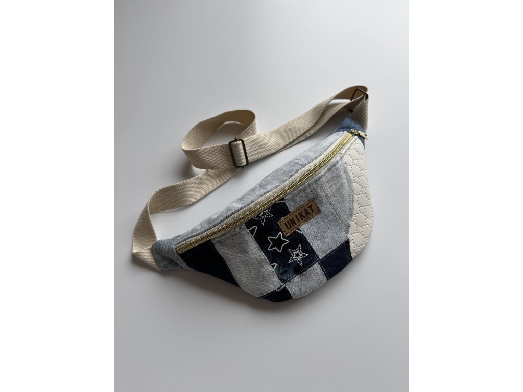 Tato ledvinka vznikla z kousků džínoviny, kterým jsem dala nový život. Každý kus je naprostý unikát - žádné dvě ledvinky nebudou stejné. Pevný materiál zajistí dlouhou životnost a praktický střih pohodlně nošení. Stylový doplněk, který spojuje funkčnost, originalitu a udržitelnou módu.