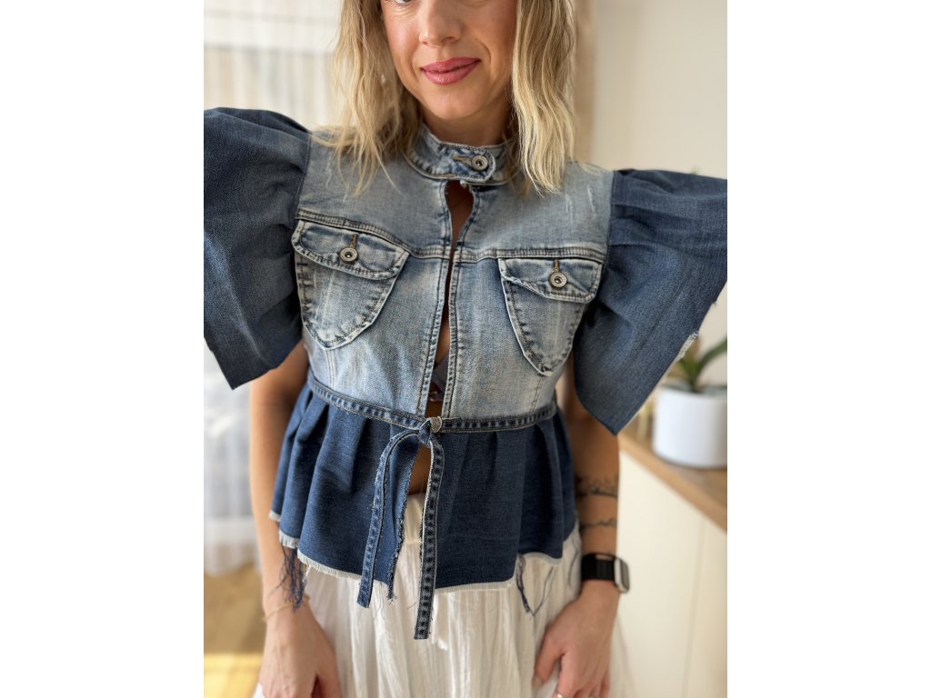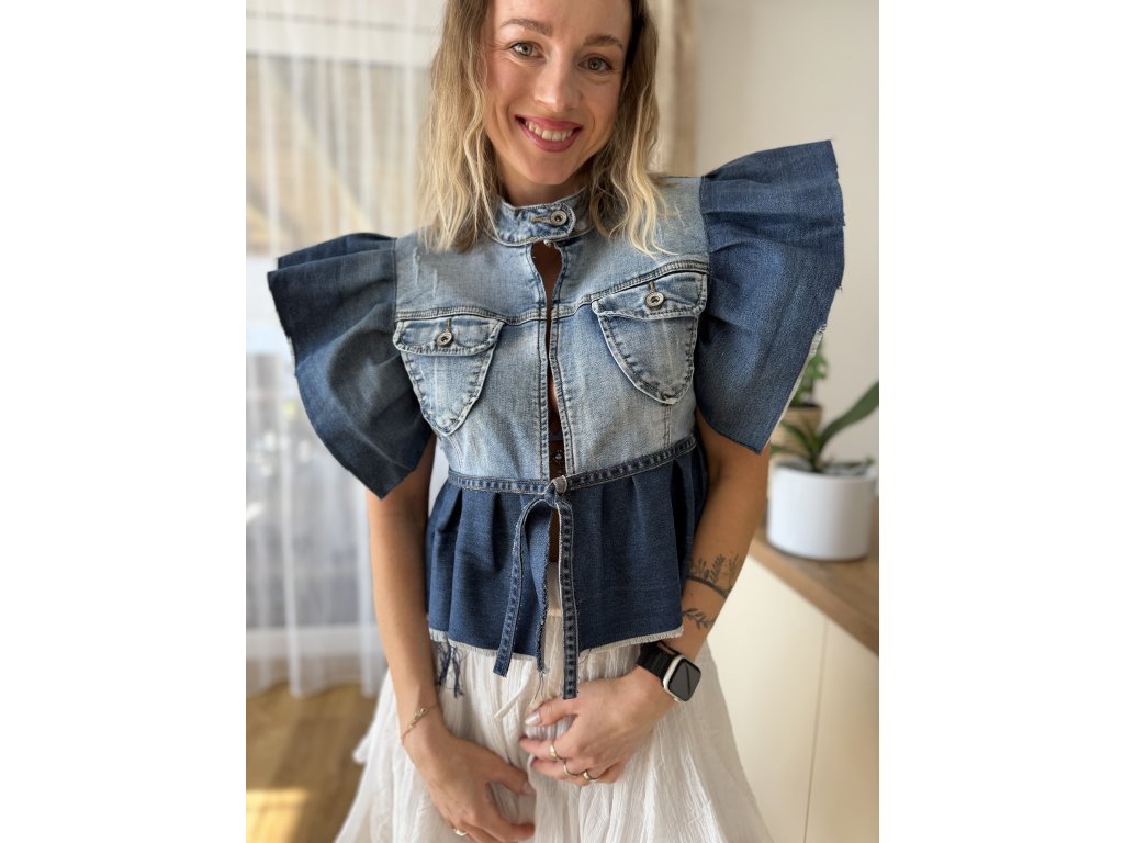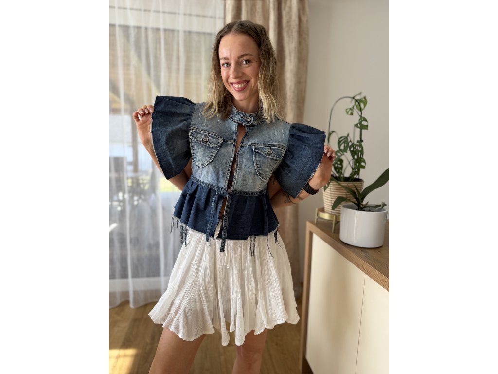 Každý kus je naprostý originál - žádné dva kusy nebudou stejné. Tenhle topík vznikl ze staré nenošené džínové bundičky.